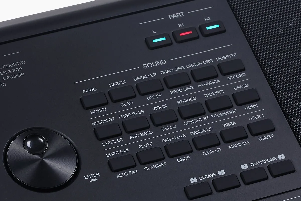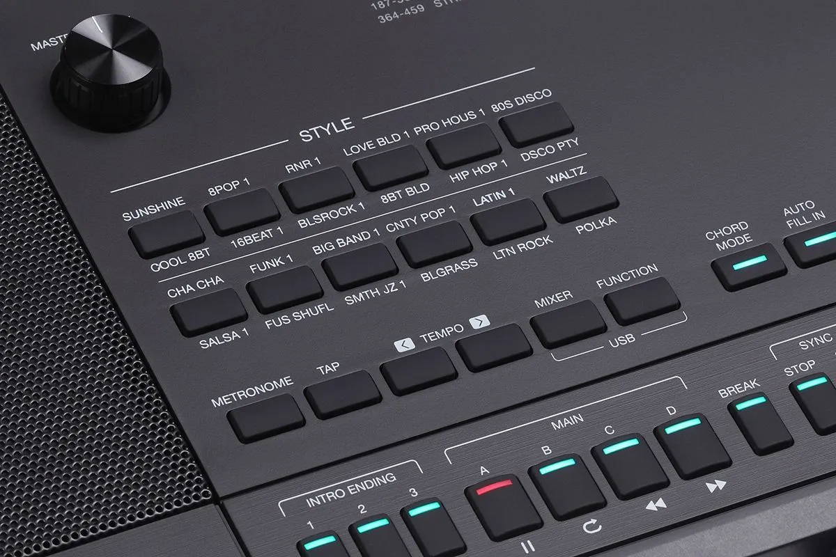 Управление Стилем: Старт / Стоп, Синхронизация начала / Синхронизация стоп, Вступление 1 / Концовка 1, Вступление 2 / Концовка 2, Вступление 3 / Концовка 3, Основная часть A / Вставка A, Основная часть B / Вставка B, Основная часть C / Вставка C, Основное D / Вставка D, Брейк, Автозаполнение, Аккорд вкл/выкл, Нарастание/затухание, Q.S.